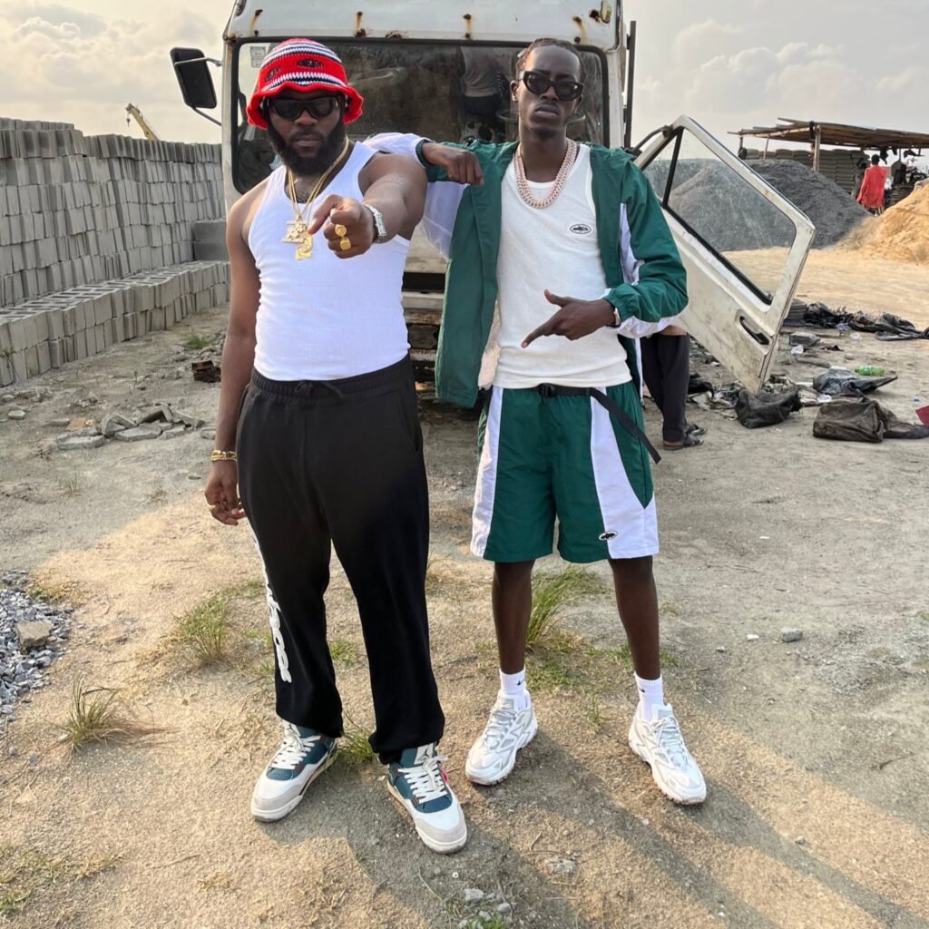ODUMODUBLVCK (left) and Unknown T (right) on set for ‘WELCOME 2 MY STRIP’ video shoot